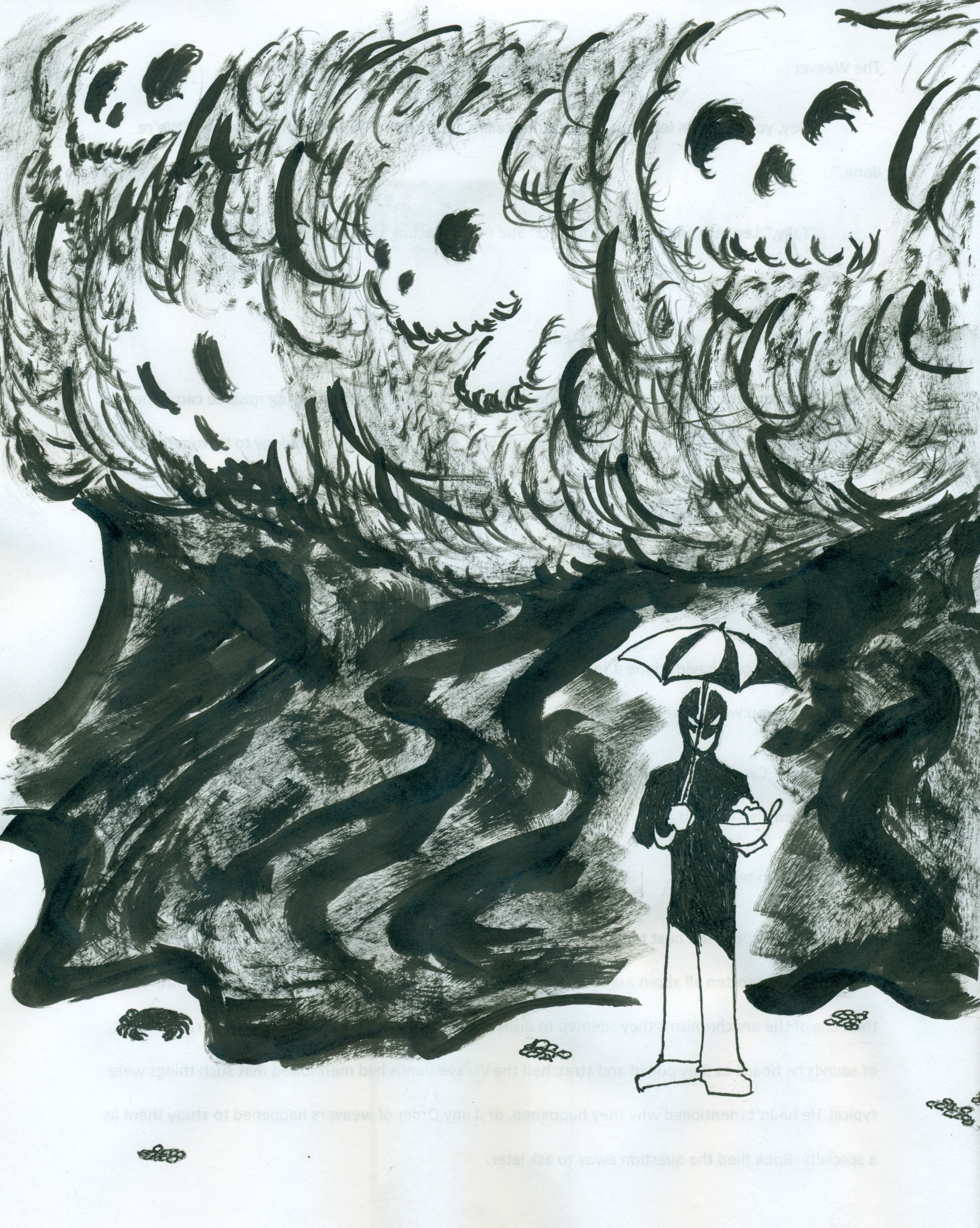 “Who?” We both looked over at the door, where a familiar, vertigo inducing knot of impossible was walking in.